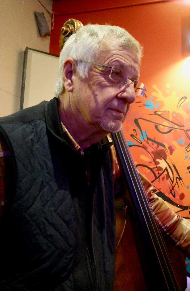 Ross started playing trombone in Grade 7, quickly switched to tuba, then added string bass when he was 17. He played his first professional gig that year, at a bar to remain nameless since the age of majority then was 21. Ross couldn’t decide between a career as a musician or an engineer. He finally settled on the latter, but not before playing an endless stream of bowling banquets, Christmas and New Year’s Eve parties, weddings and society dances, and studying music theory with Gordon Delamont. Ross has vague memories of being in the house band for the Shelburne Fiddle Festival, playing the Deep River Jazz Festival, and also at the House of Hambourg, Toronto’s cellar jazz club of the 1960s. He played baritone sax lines on a tuba on a few occasions in a rehearsal band led by Paul Hoffert, of Lighthouse fame. Ross claims he didn’t play a note for 25 years until dragooned by friends of Mike Patton at Bluffers Park Yacht Club. His favourite book is The Music Lesson by Victor Wooten.